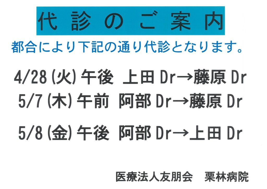 R8.4月、5月代診のお知らせ